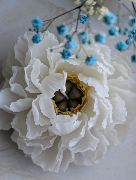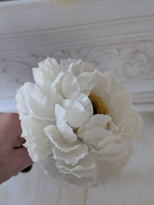 Świeca jest składana z pojedyńczych płaków z dbałością o detale tak aby wyglądała jak prawdziwy kwiat.