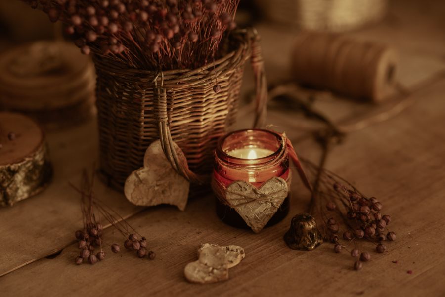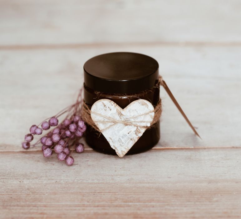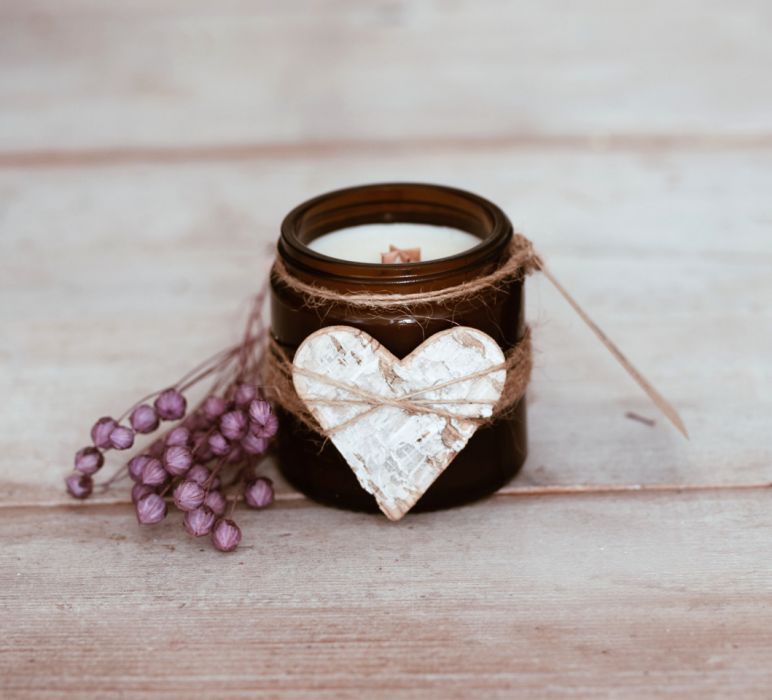 Miłość zamknięta w szklanym słoiczku z drewnianym knotem.