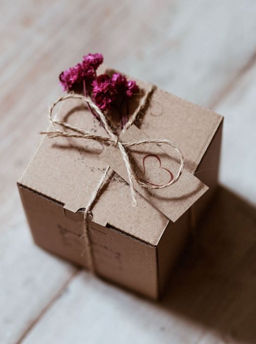 Świeca jest zapakowana w sposób prezentowy.