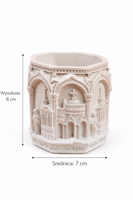NOWOŚĆRęcznie wykonany świecznik gipsowy „Konstantynopol” to wyjątkowa dekoracja wnętrz inspirowana klasyczną architekturą sakralną.