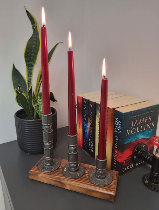 Oferowany świecznik to wspaniała ozdoba wnętrza w stylach industrialnym i loftowym dla:
