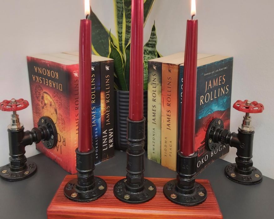 Oferowany świecznik to wspaniała ozdoba wnętrza w stylach industrialnym i loftowym dla: