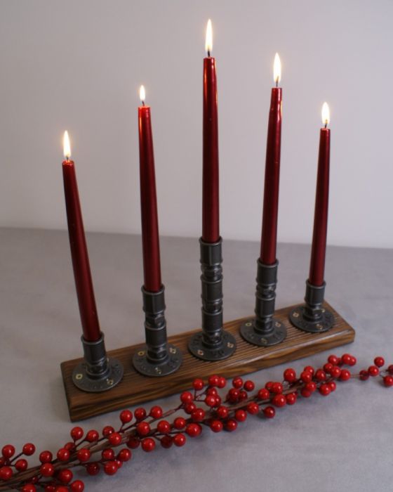 Oferowany świecznik to wspaniała ozdoba wnętrza w stylach industrialnym i loftowym dla: