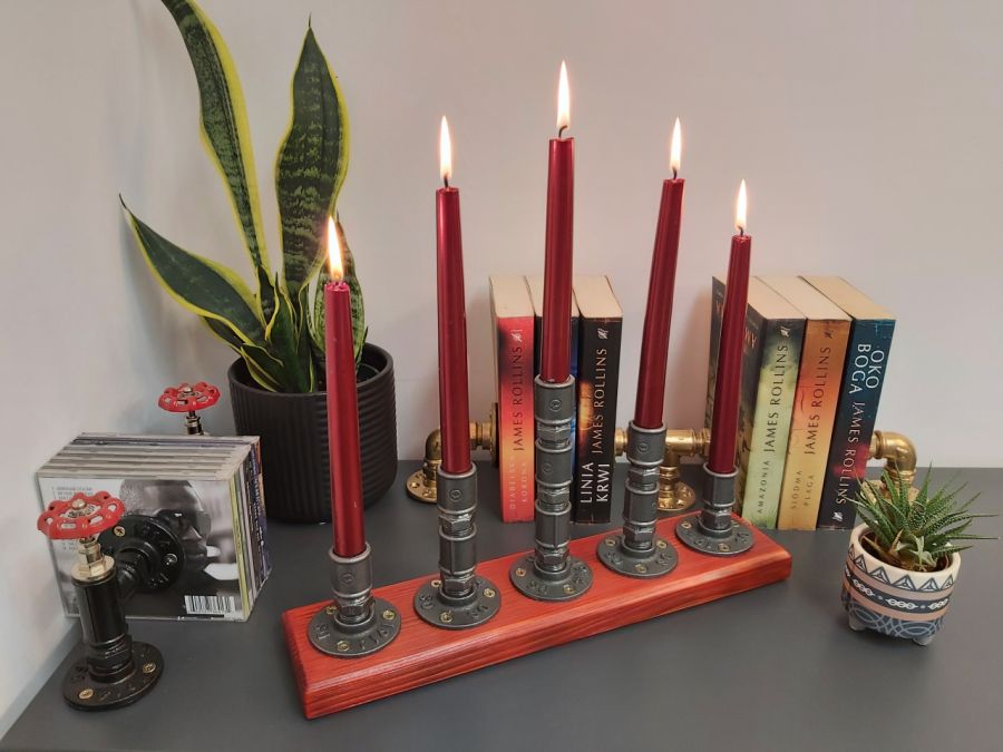 Oferowany świecznik to wspaniała ozdoba wnętrza w stylach industrialnym i loftowym dla: