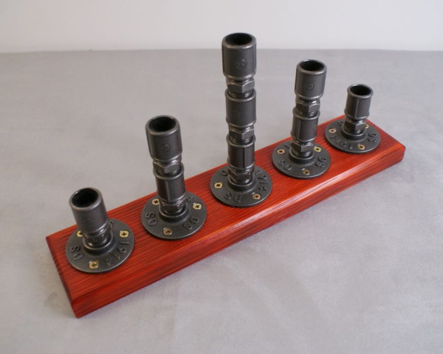 Przedstawiamy ręcznie wykonany świecznik w połączeniu dwóch stylów: industrialnego z uwagi na wykorzystanie stalowych rur hydraulicznych oraz stylu loftowego dzięki ciepłu jakie daje nam postarzałe lakierowane drewno.