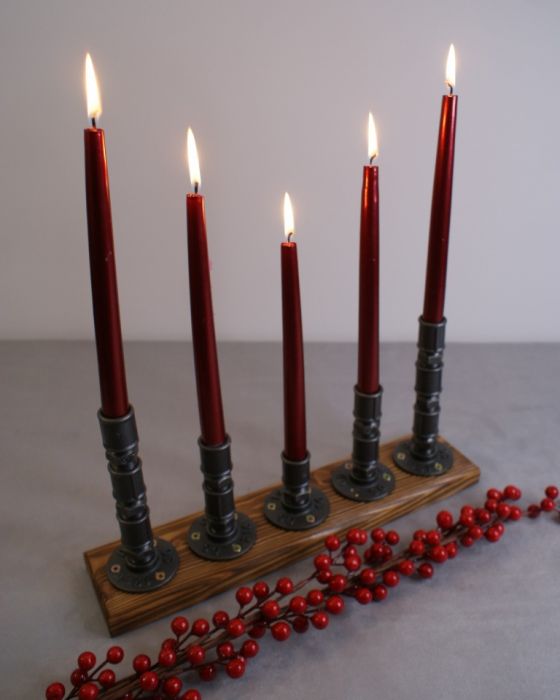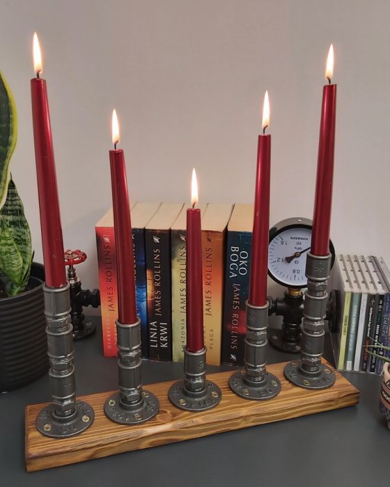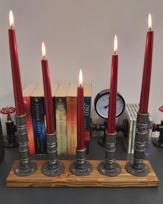 Oferowany świecznik to wspaniała ozdoba wnętrza w stylach industrialnym i loftowym dla: