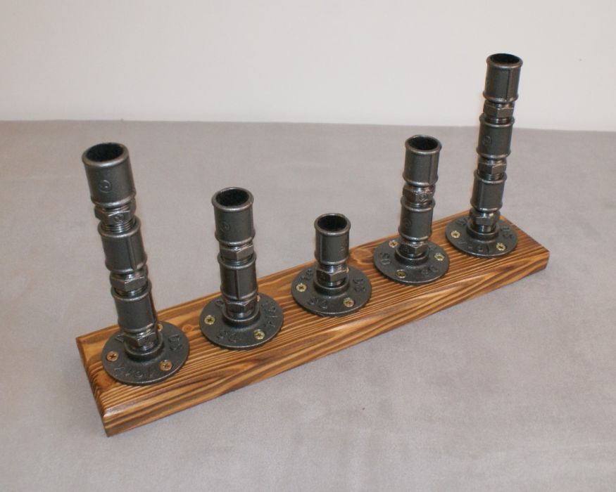 Przedstawiamy ręcznie wykonany świecznik w połączeniu dwóch stylów: industrialnego z uwagi na wykorzystanie stalowych rur hydraulicznych oraz stylu loftowego dzięki ciepłu jakie daje nam postarzałe lakierowane drewno.