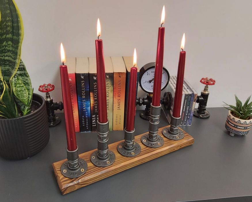 Oferowany świecznik to wspaniała ozdoba wnętrza w stylach industrialnym i loftowym dla: