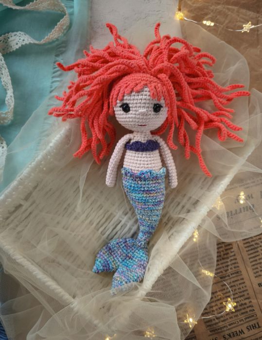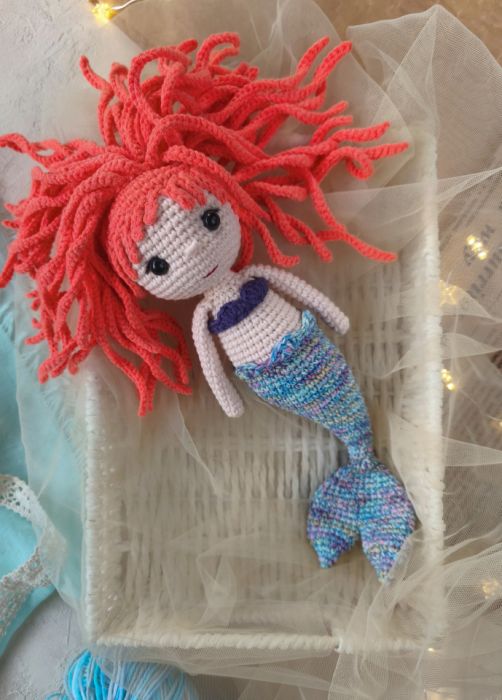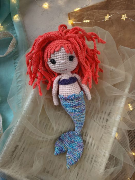 • Syrenka wykonana jest z hipoalergicznej włóczki półbawełnianej.
