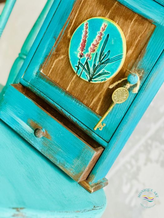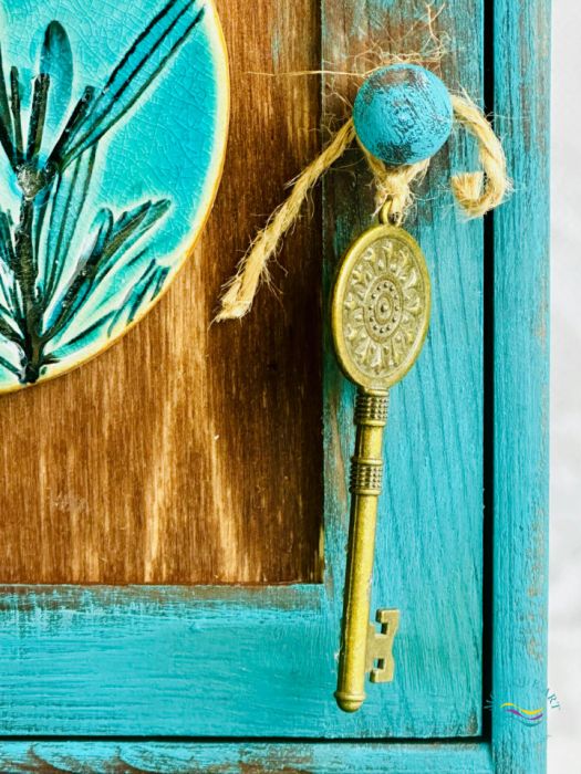 Nazwa produktu: Szafka na klucze, ręcznie malowana, z ceramiką, z duszą i historią