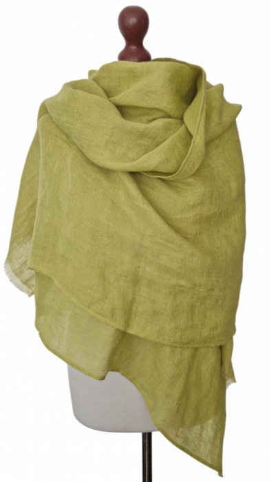 Duży lniany szal z prześwitującej mgiełki.