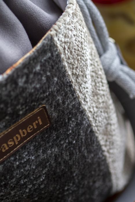 Całość ściągana grubym, bawełnianym sznurkiem w kolorze jasnoszarym.