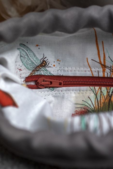 Całość ściągana grubym, bawełnianym sznurkiem w kolorze jasnoszarym.