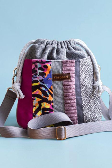 Wykonana z tkaniny w kolorze szarym. Z przodu oraz z na tyle torebki kieszenie (np. na telefon czy chusteczki) w stylu patchworkowym. W środku kieszonka zapinana na suwak.