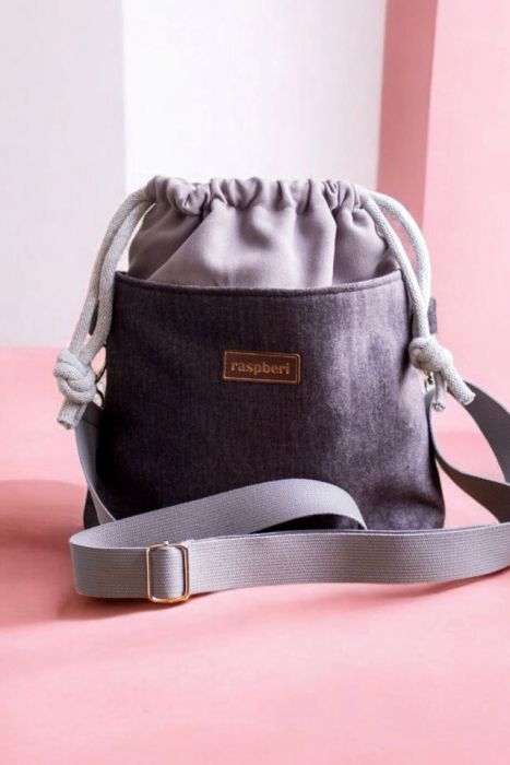 Całość ściągana grubym, bawełnianym sznurkiem w kolorze jasnoszarym.
