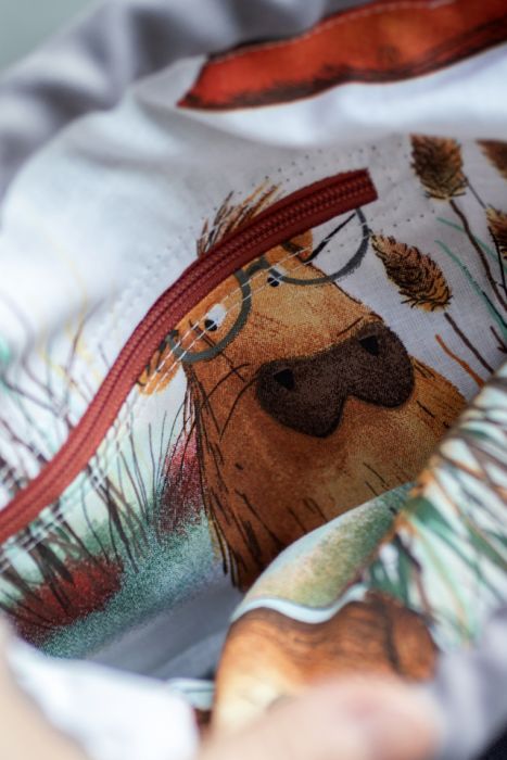 Listonoszka posiada regulowany, bawełniany pasek grubości 3cm w kolorze szarym.