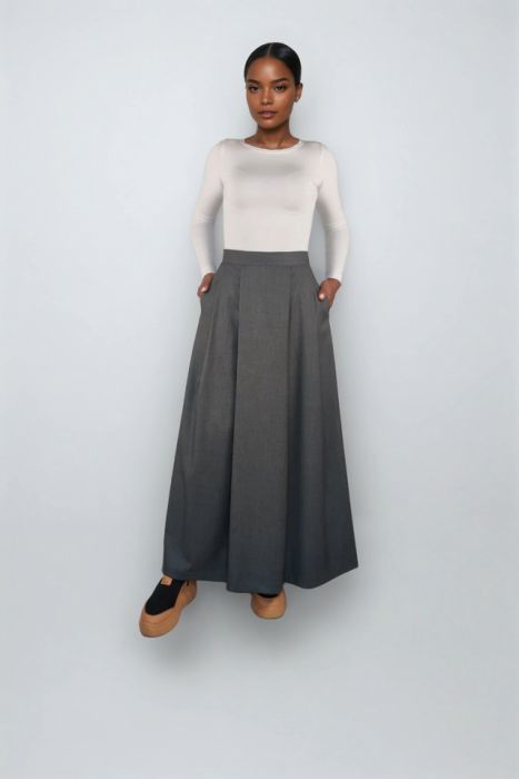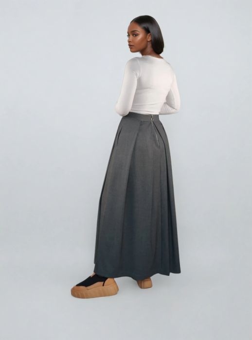 Zadaj pytanie dotyczące produktu: Szara spódnica maxi z ozdobnymi kontrafałdami