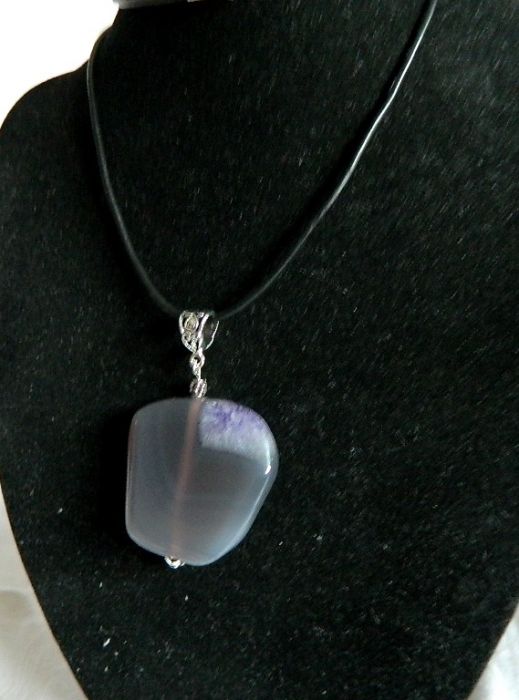 Zadaj pytanie dotyczące produktu: Szaro-fioletowy nieregularny agat z kryształem, wisiorek