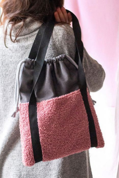 Zadaj pytanie dotyczące produktu: Szaro-różowa torba z kominem baranek