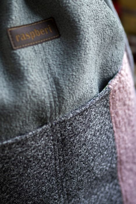 Dół tworzy dodatkowe miejsce na przechowywanie rzeczy - z przodu dwie kieszenie (np. na butelkę), z tyłu jedną duża kieszeń (idealna na tablet). Wykonane z różnych kawałków tkanin tworzących wspólnie ciekawą wizualnie całość.
