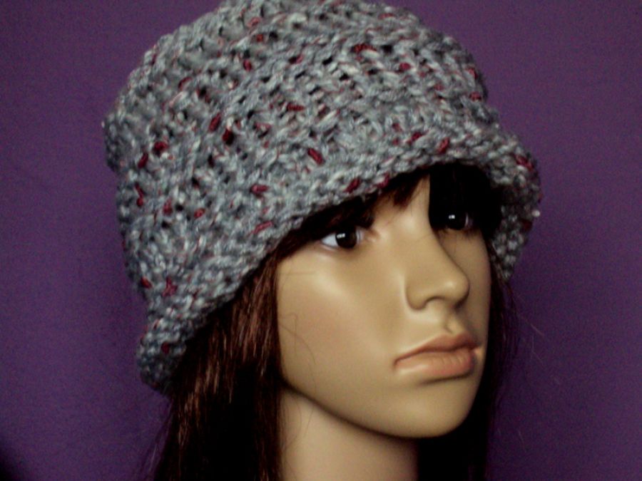 czapka/kapelusik i szalik wydziergane z szarej włóczki ozdobionej nopkami w kolorze zgaszonego różu. bardzo efektowny dodatek do ubioru. polecam. zapraszam do zakupów moich wyrobów.