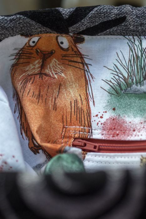 Biała, wzorzysta, bawełniana podszewka w kapibary. Kieszonka w środku.