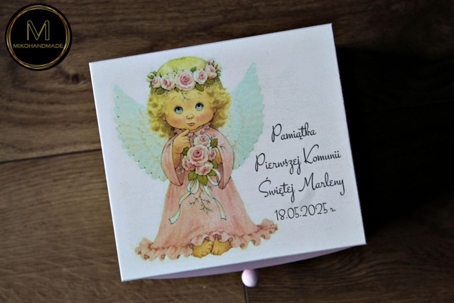 Ta wyjątkowa, ręcznie zdobiona szkatułka to nie tylko piękny przedmiot, ale przede wszystkim pamiątka na całe życie, która zachowa najcenniejsze wspomnienia z uroczystości Pierwszej Komunii Świętej. Wykonana z dbałością o każdy detal, stanie się ozdobą dziecięcego pokoju i skarbnicą pierwszych "dorosłych" drobiazgów.