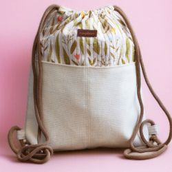 Workoplecak z jasnego grubego sztruksu w kwiaty.