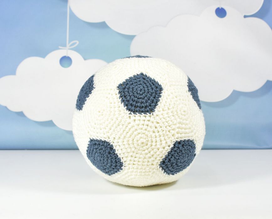 Szydełkowa poduszka w kształcie piłki nożnej – handmade dla małego fana sportu