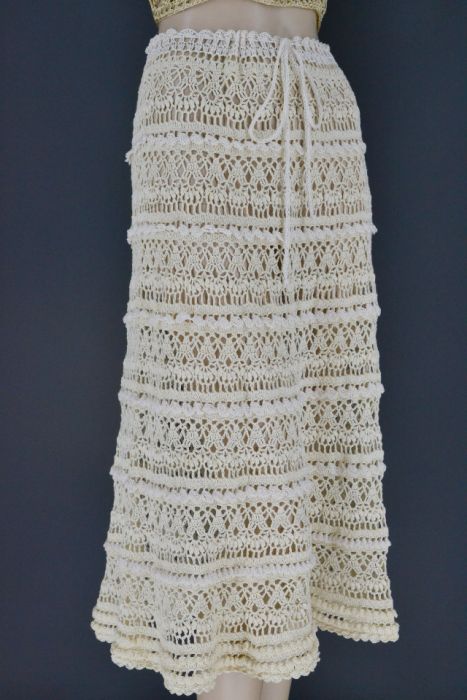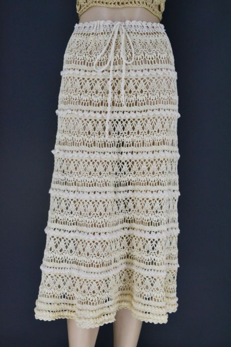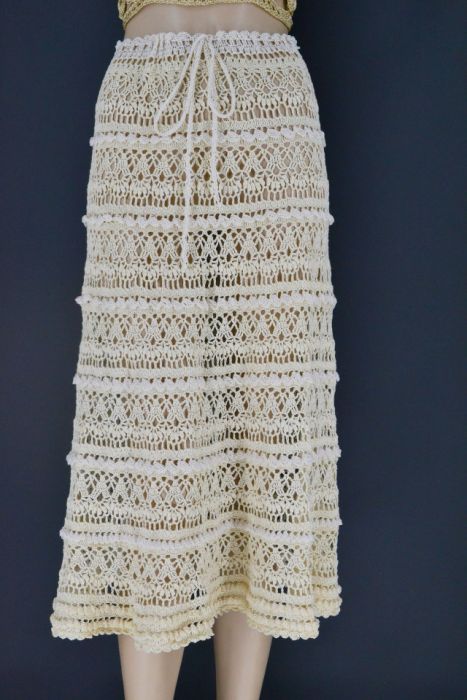 Spódnica wykonana ręcznie na szydełku z włoczki o składzie 100% bawełna w kolorze ecru.