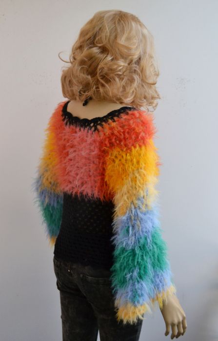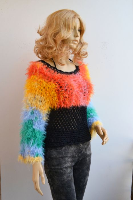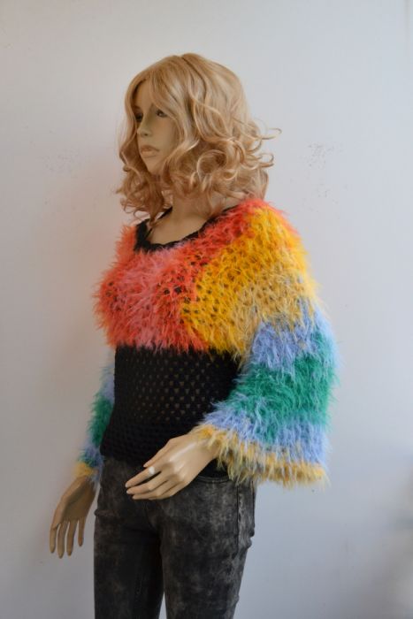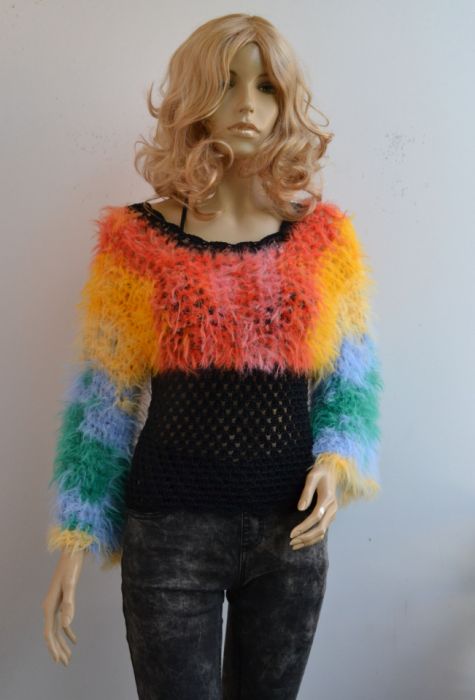 Nazwa produktu: Szydełkowy sweterek w kolorze tęczy i czarnym