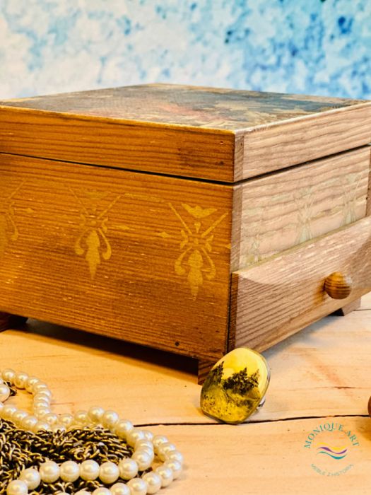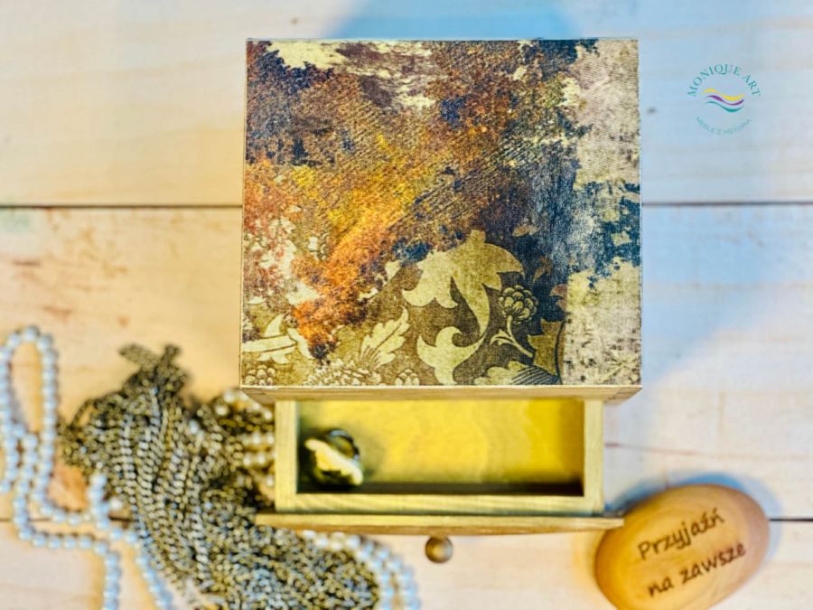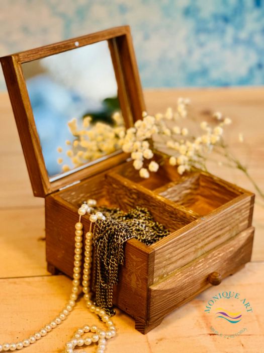 Zadaj pytanie dotyczące produktu: Toaletka z lusterkiem, naturalne drewno, złote wzory, prezent
