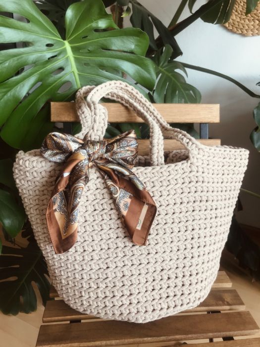 Torebka szydełkowa,koszyk na szydełku z sznurka bawełnianego + apaszka