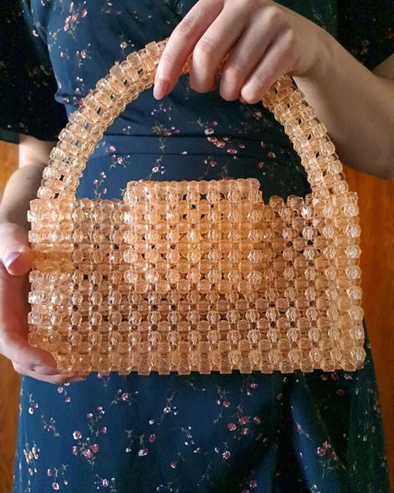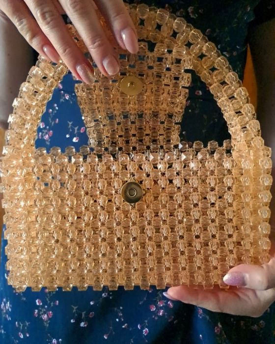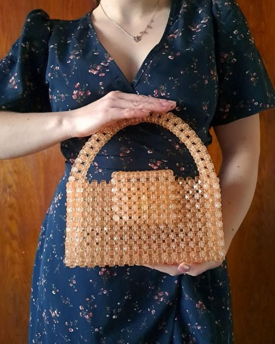 Torebki wykonane z akrylowych koralików połączonych grubą żyłką mogą ulec uszkodzeniu – szczególnie przy nadmiernym obciążeniu lub silnym szarpnięciu.