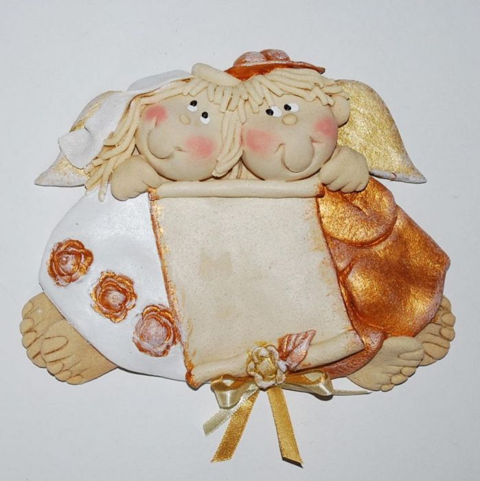 Para aniołków z masy solnej może stać się miłym prezentem dla nowożeńców, nieprzeciętnym upominkiem z okazji jubileuszu lub ozdobą Waszej sypialni. Anioły wykonane są z masy solnej, termicznie utwardzane, malowane z tyłu zabezpieczone lakierem i zapakowane ozdobnie w woreczek z celofanu..