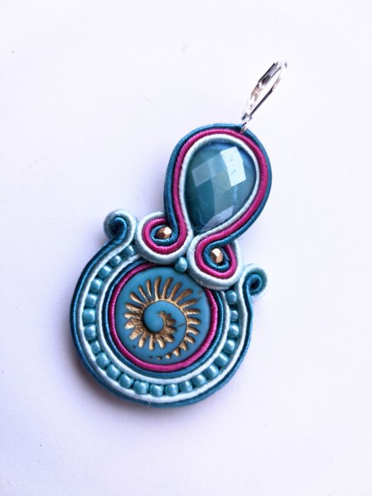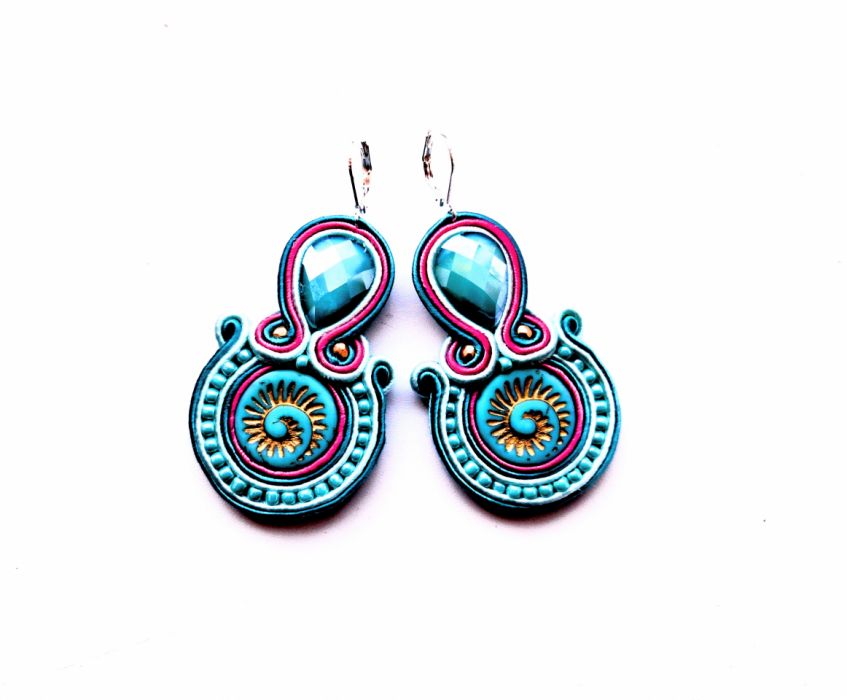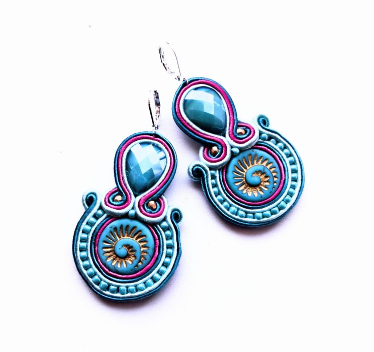 Kolczyki wykonane w modnej technice haftu sutaszowego. Jest ona pracochłonna, ale daje piękne efekty.