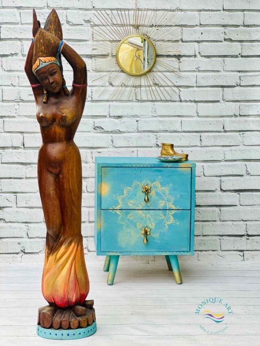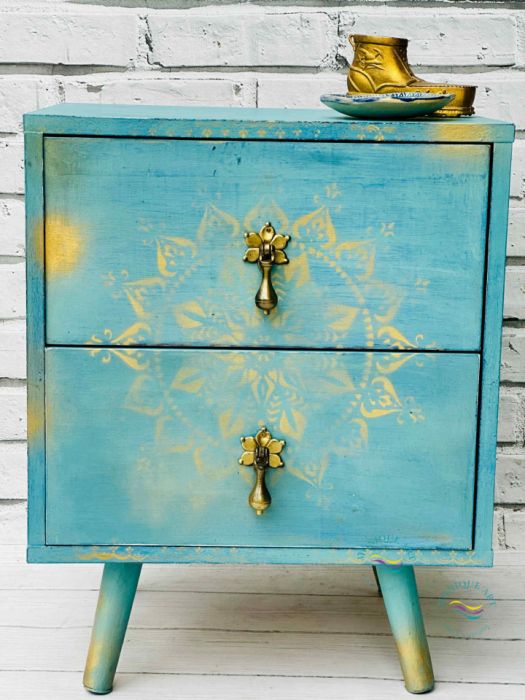 Nazwa produktu: Turkusowa szafka z mandalą, orientalna, ciekawe uchwyty, wysyłka