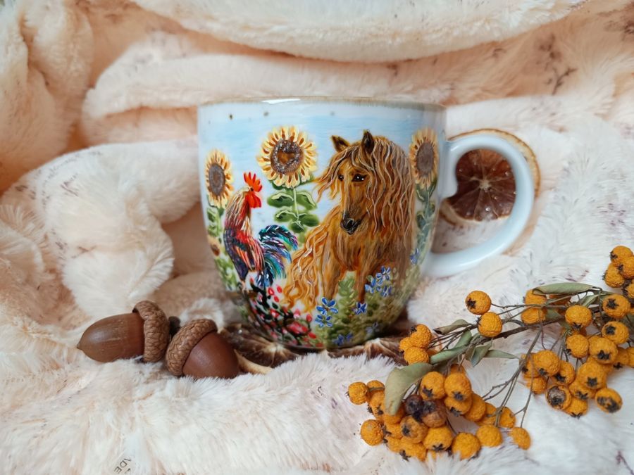 Kubek malowany wiele, wiele godzin z wielką troską o wszelkie szczegóły z miłości do natury, z miłości do tego co piękne i ulotne..