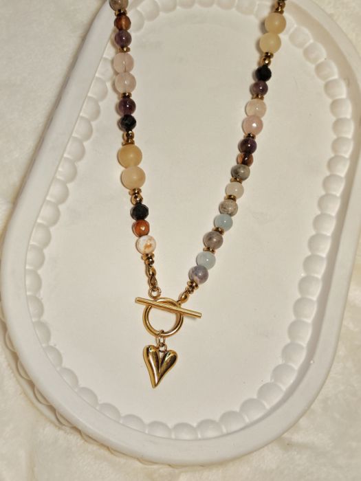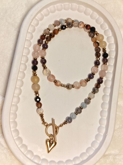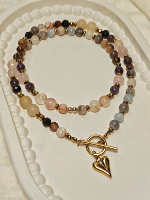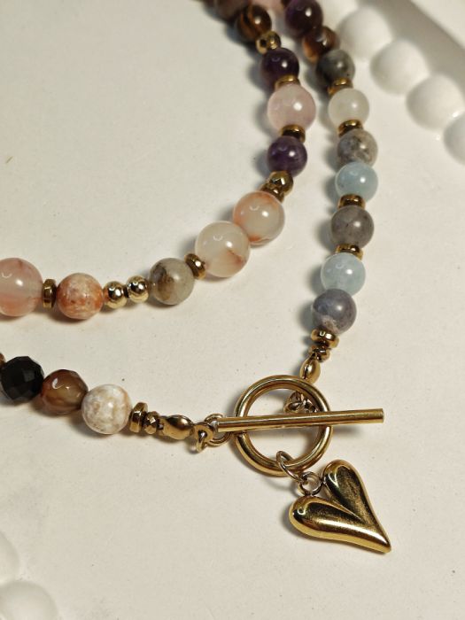 Ten naszyjnik jest jedyny i niepowtarzalny, stworzony dla osoby, która ceni sobie wyjątkowość. Nosi w sobie energię starannie dobranych kamieni naturalnych, tworząc subtelną, wielobarwną kompozycję.