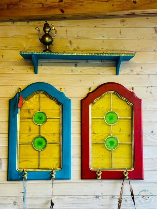 dwa wieszaki ścienne wykonane ze starych drzwiczek meblowych (47 cm x 73 cm)