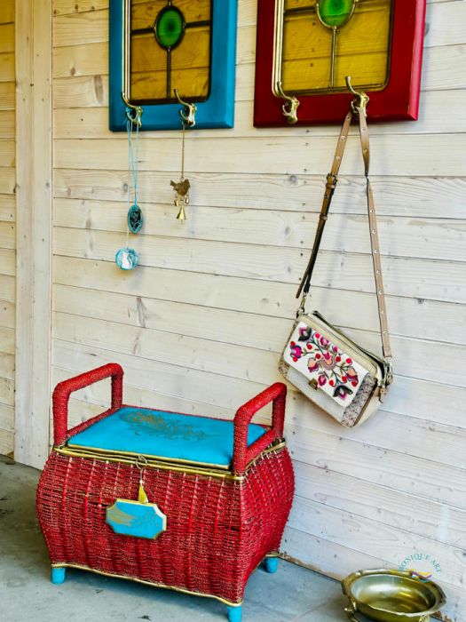 odnowione wiklinowe siedzisko z funkcją schowka