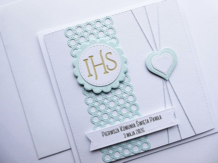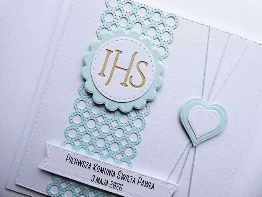 Urokliwa ręcznie wykonana kartka komunijna w komplecie z białą kopertą - minimalistyczna, a jednocześnie bardzo elegancka.