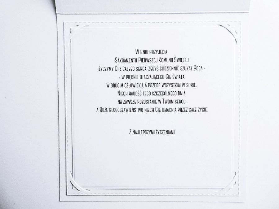 Zadaj pytanie dotyczące produktu: Urokliwa kartka na Komunię personalizowana