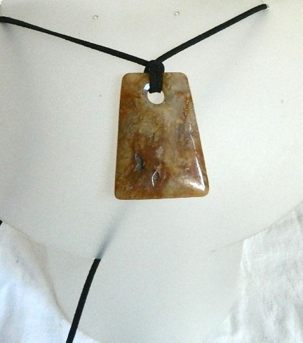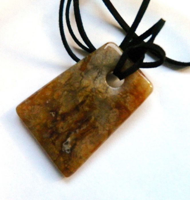Nazwa produktu: Oliwkowy jaspis, oryginalny wisior na rzemyku