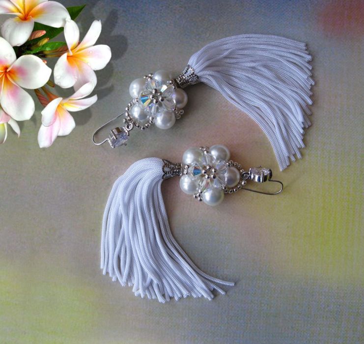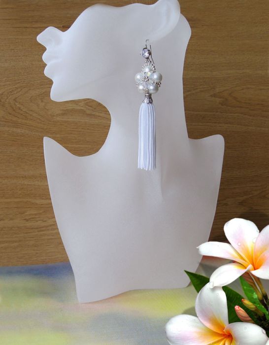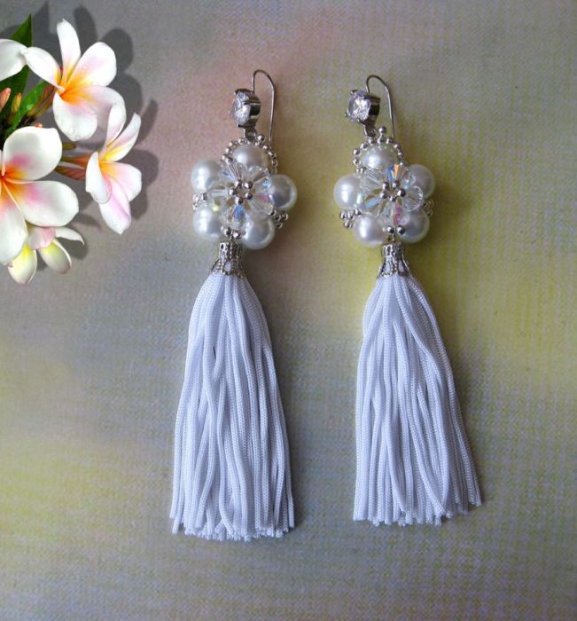 Nazwa produktu: W bieli,kolczyki z frędzlami.