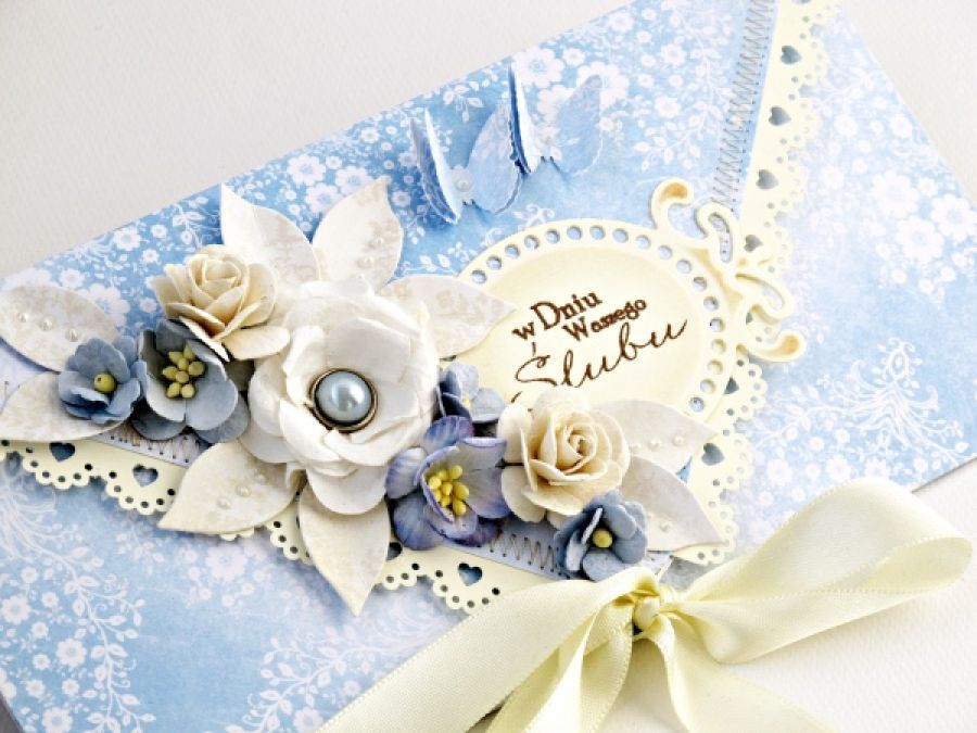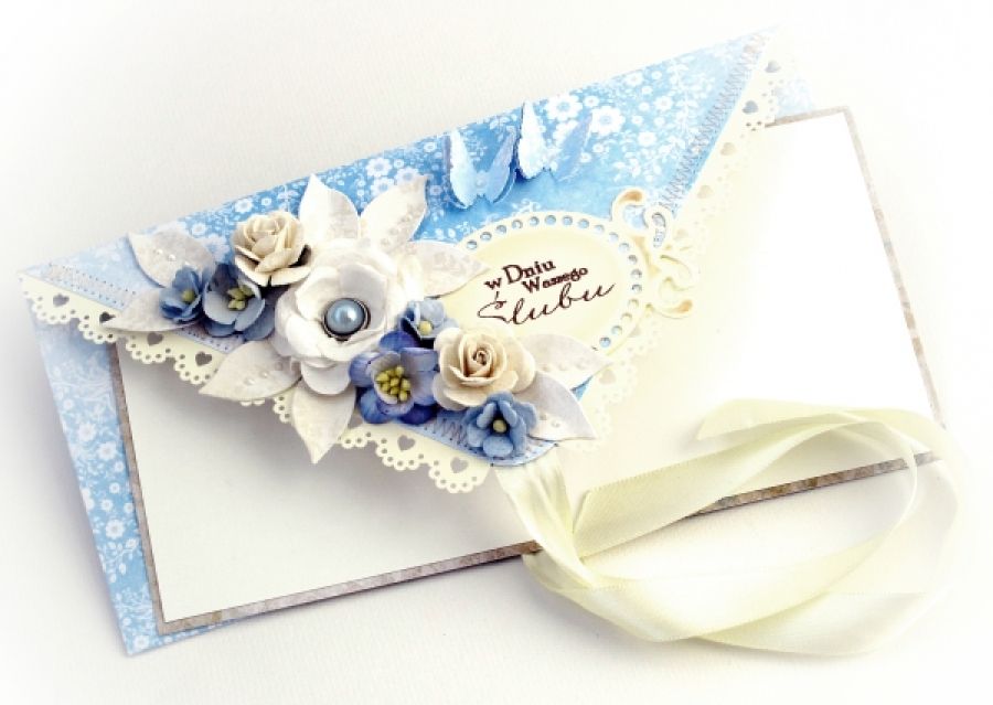 Wyjątkowa i elegancka, ręcznie zrobiona kartka-kopertówka pełna ślubnych życzeń. Przeszywana, bogato zdobiona motywem kwiatowym, z pewnością ucieszy obdarowanych. Serdecznie zapraszam.