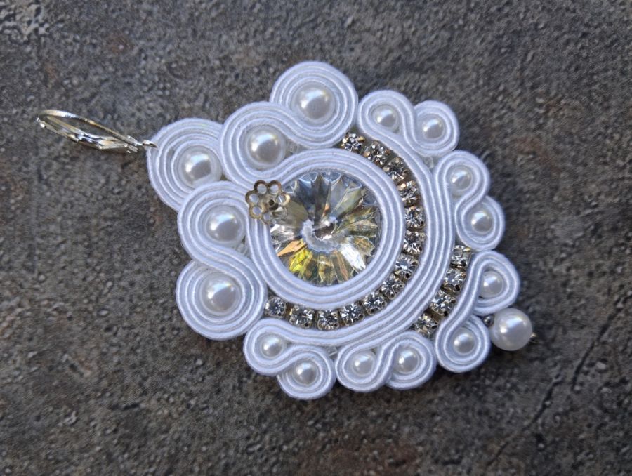 Kolczyki wykonane w modnej technice haftu sutaszowego. Jest ona pracochłonna, ale daje piękne efekty.