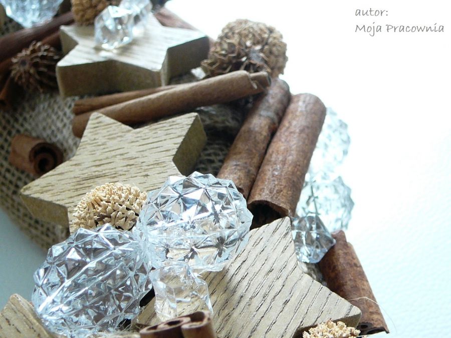 wianek, juta, cynamon, gwiazdki, kryształki, susz egzotyczny