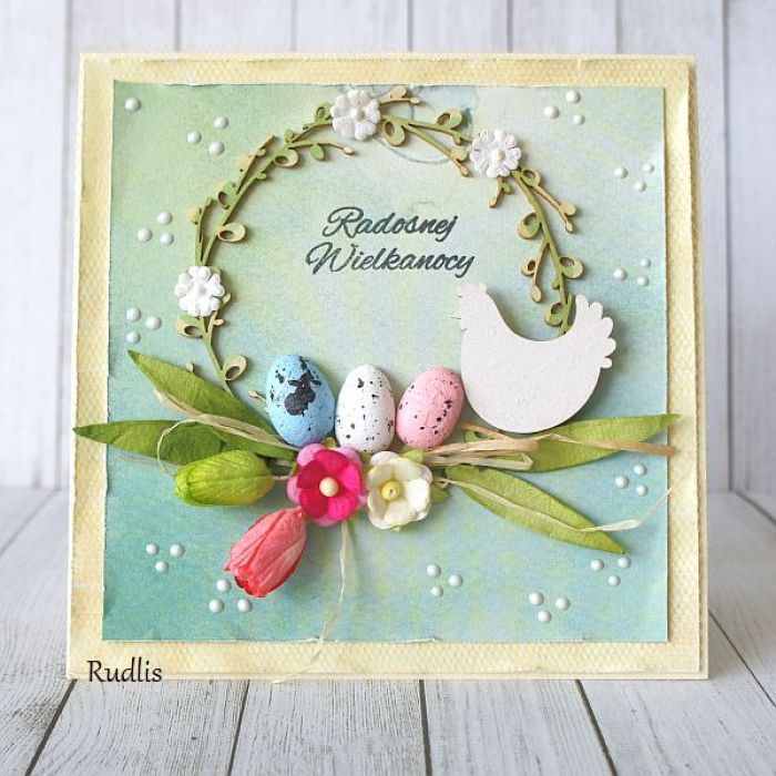 Urocza i wesoła kartka wielkanocna, wykonana z wykorzystaniem profesjonalnych materiałów.