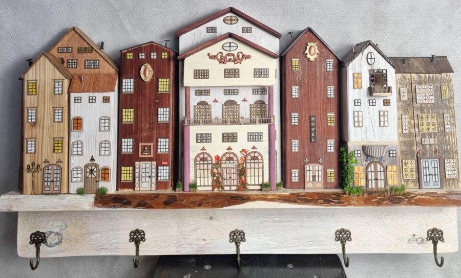 Zadaj pytanie dotyczące produktu: Wieszak - drewniane domki - na klucze i inne drobiazgi 13.